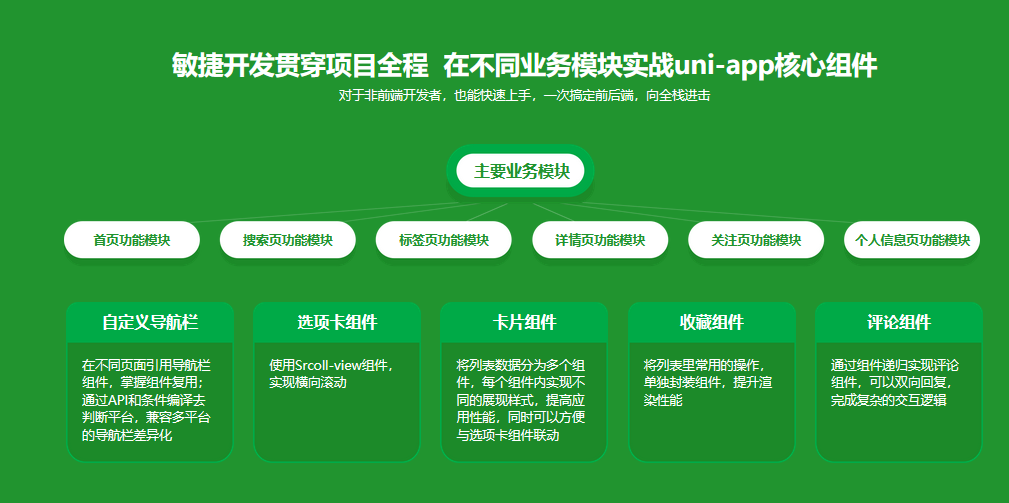 本章正式开始进入项目,主要讲解首页功能模块的实现,包括了自定义导航栏的实现、字体图标的使用、数据的请求封装、选项卡组件化、内容列表组件话等,并使用 uniCloud 去开发相关的数据接口。